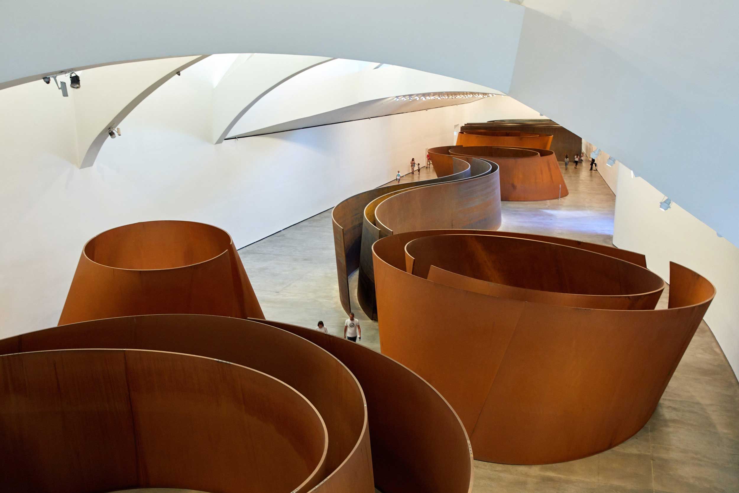 Le musée Guggenheim est sans aucun doute le site le plus spectaculaire de Bilbao et une visite guidée de ce chef-d'œuvre d'art et d'architecture s'impose. Conçu par l'architecte canado-américain Frank Gehry, le musée Guggenheim est un monument architectural à la configuration audacieuse et au design innovant, qui offre un cadre séduisant à la collection d'œuvres d'art qui y est exposée, comme l'œuvre gigantesque en tôles d'acier courbées 'The Matter of Time' de l'artiste minimaliste Richard Serra.